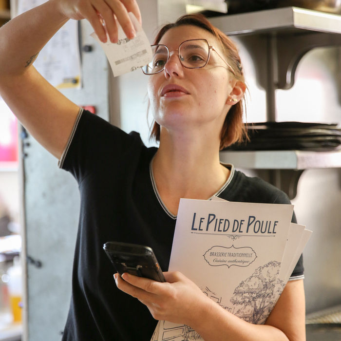 Le Pied de Poule propose un menu du midi en semaine, renouvelé chaque jour, ainsi qu’un panneau de suggestions le soir, inspiré par les arrivages et les produits frais du moment.